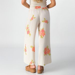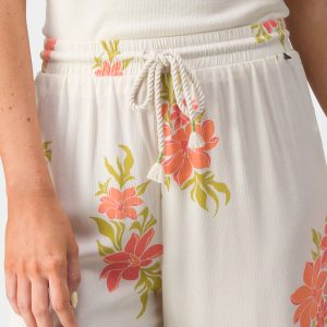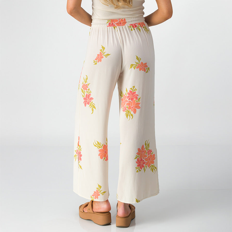These flowing. wide-leg pants are as easy as it gets. The elastic waistband and soft lightweight woven fabric keep things comfy. Our Belladonna pant welcomes springtime whimsy with its open floral pattern and novelty drawcord. Go from beach to brunch with ease—just add a little sunshine.