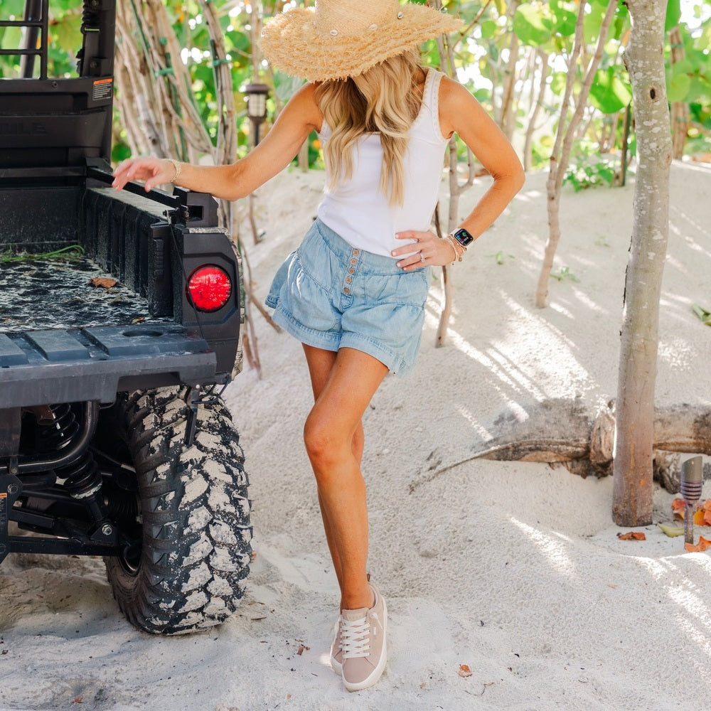 Ultra-flattering and easy to wear. the Lay Day Dawn is a premium sneaker with everyday functionality. We’ve created a unique hidden wedge insole that elongates your legs and offers superior comfort with a cork top layer. memory foam mid layer. and cushy EVA base. Finished with a rubber cupsole for added traction and durability.