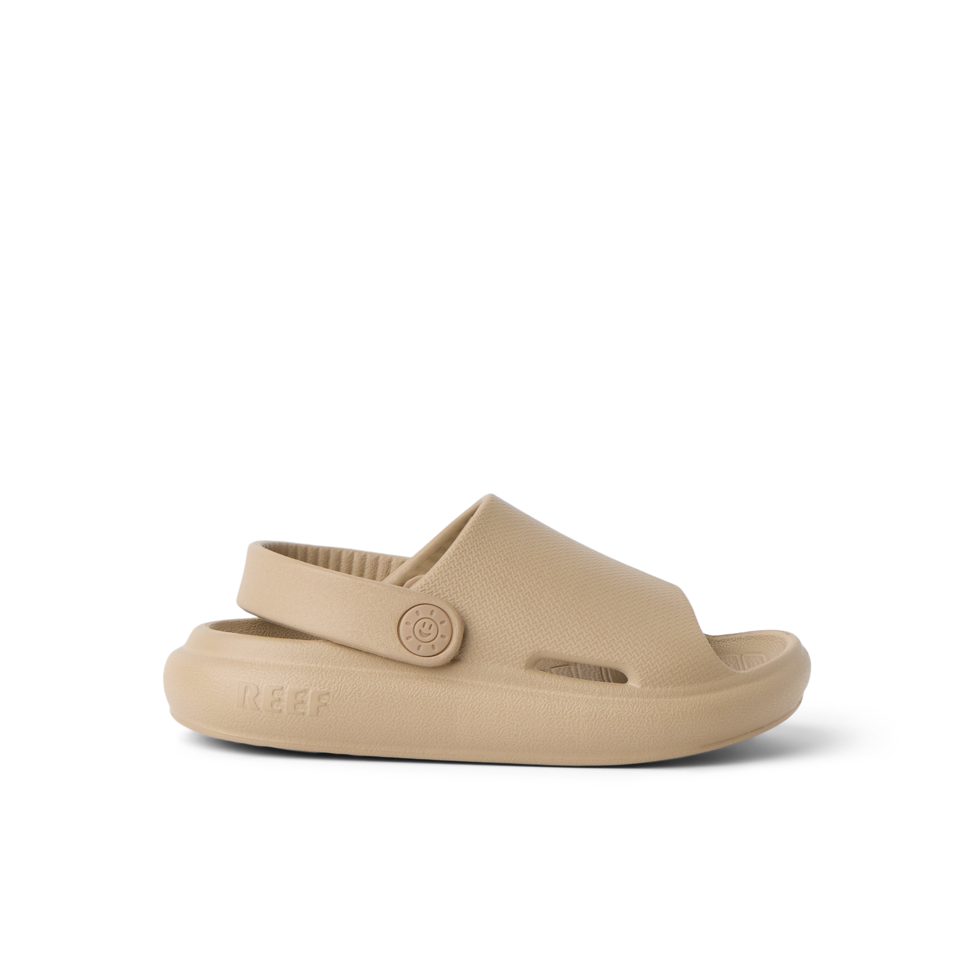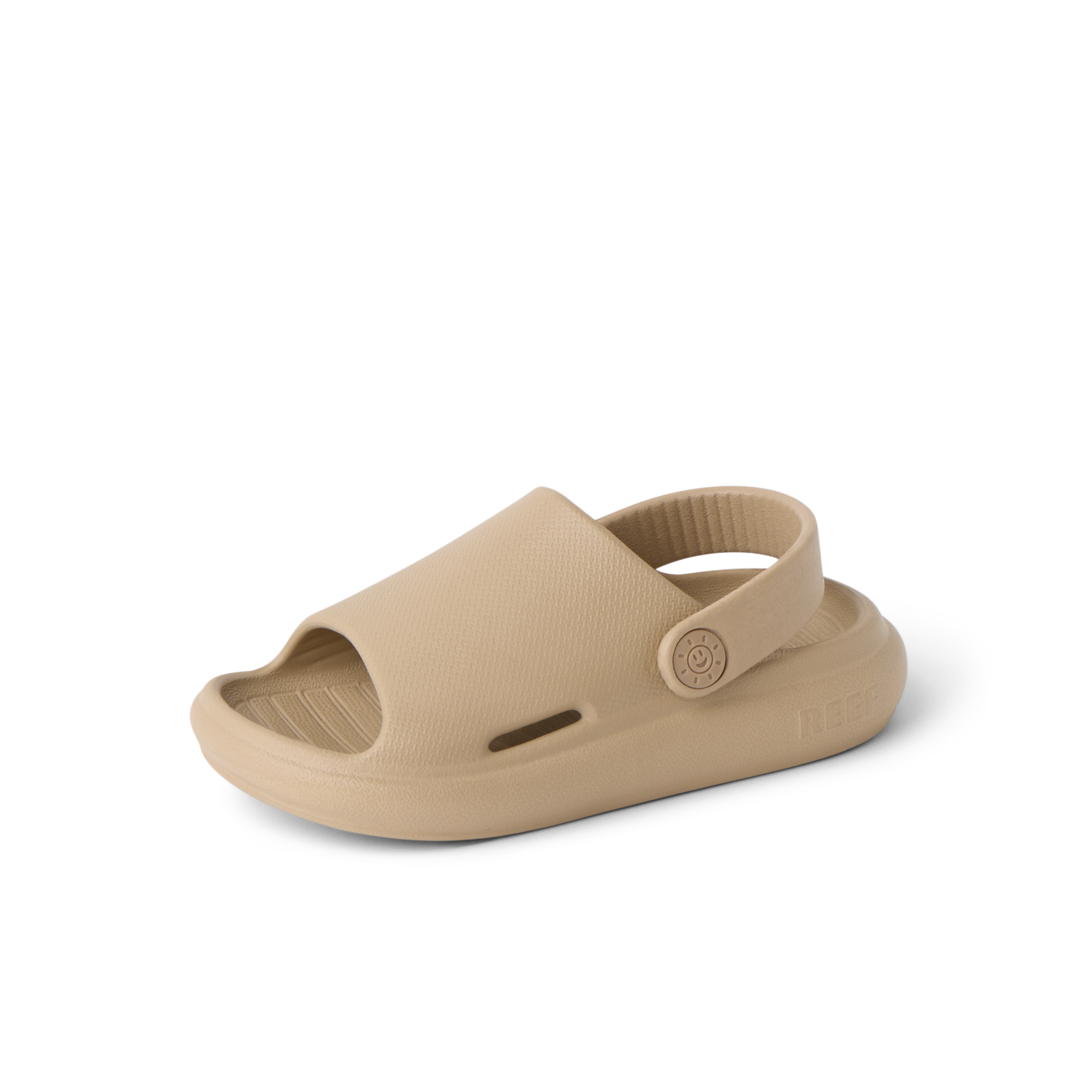 Super lightweight and ready for fun. The Little Rio Slide is designed with injected EVA that can be worn in and out of the water. Finished with a convertible strap and sunny embossed detail.