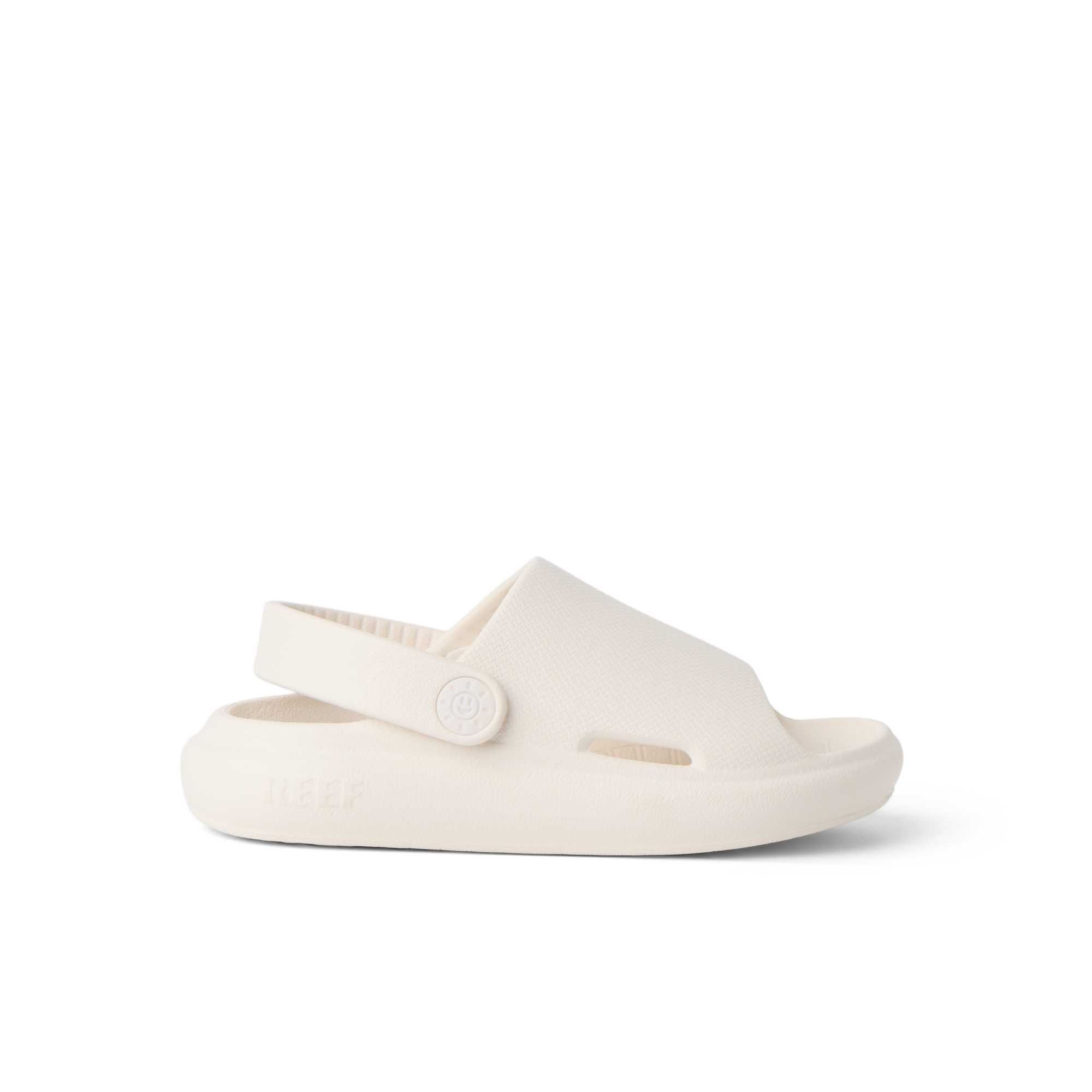 Super lightweight and ready for fun. The Little Rio Slide is designed with injected EVA that can be worn in and out of the water. Finished with a convertible strap and sunny embossed detail.