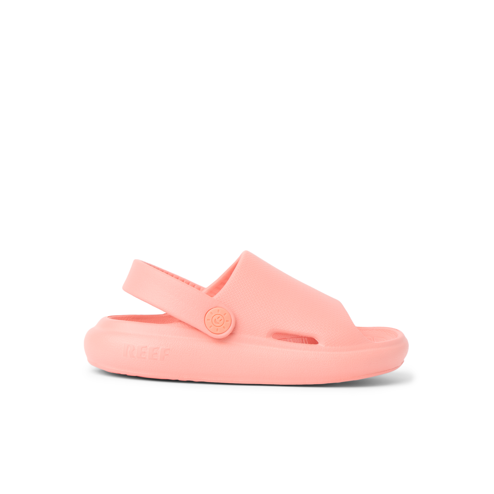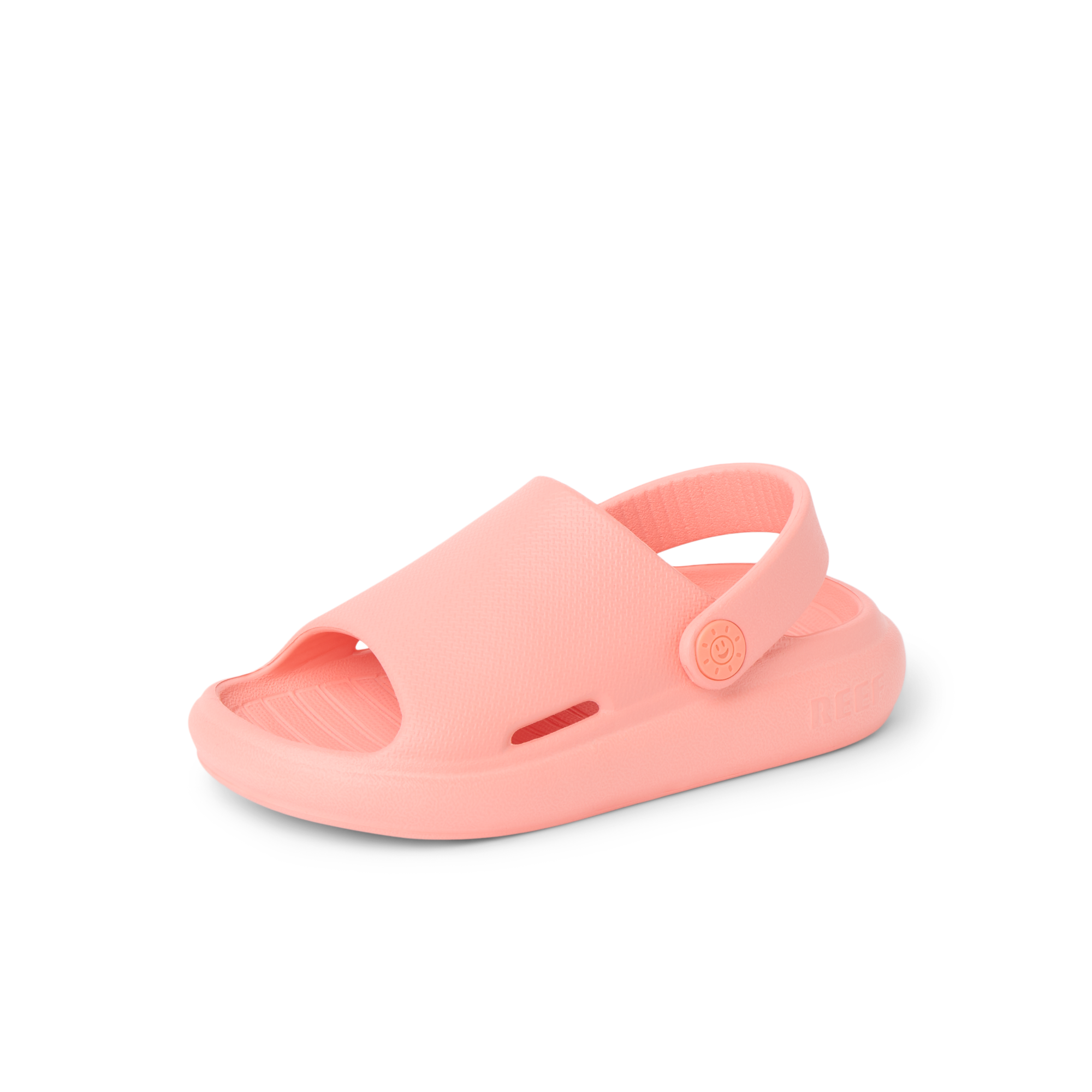 Super lightweight and ready for fun. The Little Rio Slide is designed with injected EVA that can be worn in and out of the water. Finished with a convertible strap and sunny embossed detail.