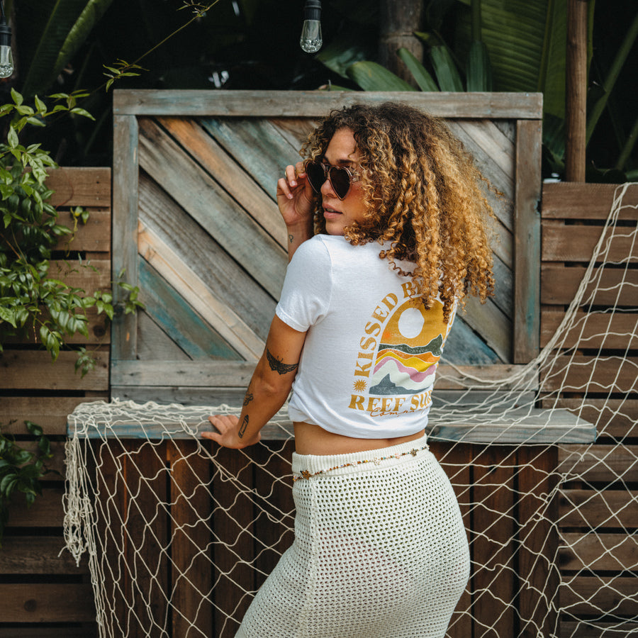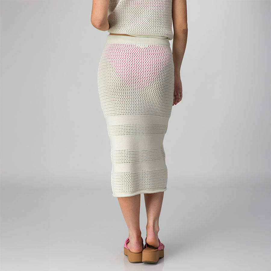 This midi-length. open knit skirt is your go-to for effortless style. With an elasticated waistband and relaxed fit. it’s an easy choice for your sunny escapes. Wear our Mika skirt over a bathing suit at the beach. or over a some booty shorts at the shops. This skirt offers comfort and a flattering flair for all your seaside days.